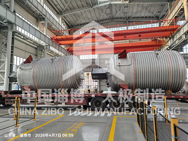 近日,淄博太極特材裝備廠為客戶定制的 18 臺非標不銹鋼反應釜,一次性通過全部檢測并如期啟運,順利交付。